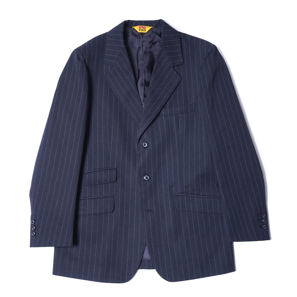 オリジナルで開発した TC ツイル素材を使ったピンストライプジャケットとパンツのセットアップにも注目したい。