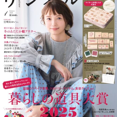 11月19日発売の『リンネル』2026年1月号は、毎年恒例の人気企画の「暮らしの道具大賞2025」特集をお届け。高山都さんやあやシェフさんなど、総勢22名の暮らしの賢者が選んだ注目の道具を大発表します。さらに、「芳根京子さんと5つの旬アウター」企画や「高畑充希さんとふりかえる心ほどける『手しごと』の時間」企画など、魅力的な企画が満載です。ぜひチェックしてみてくださいね。