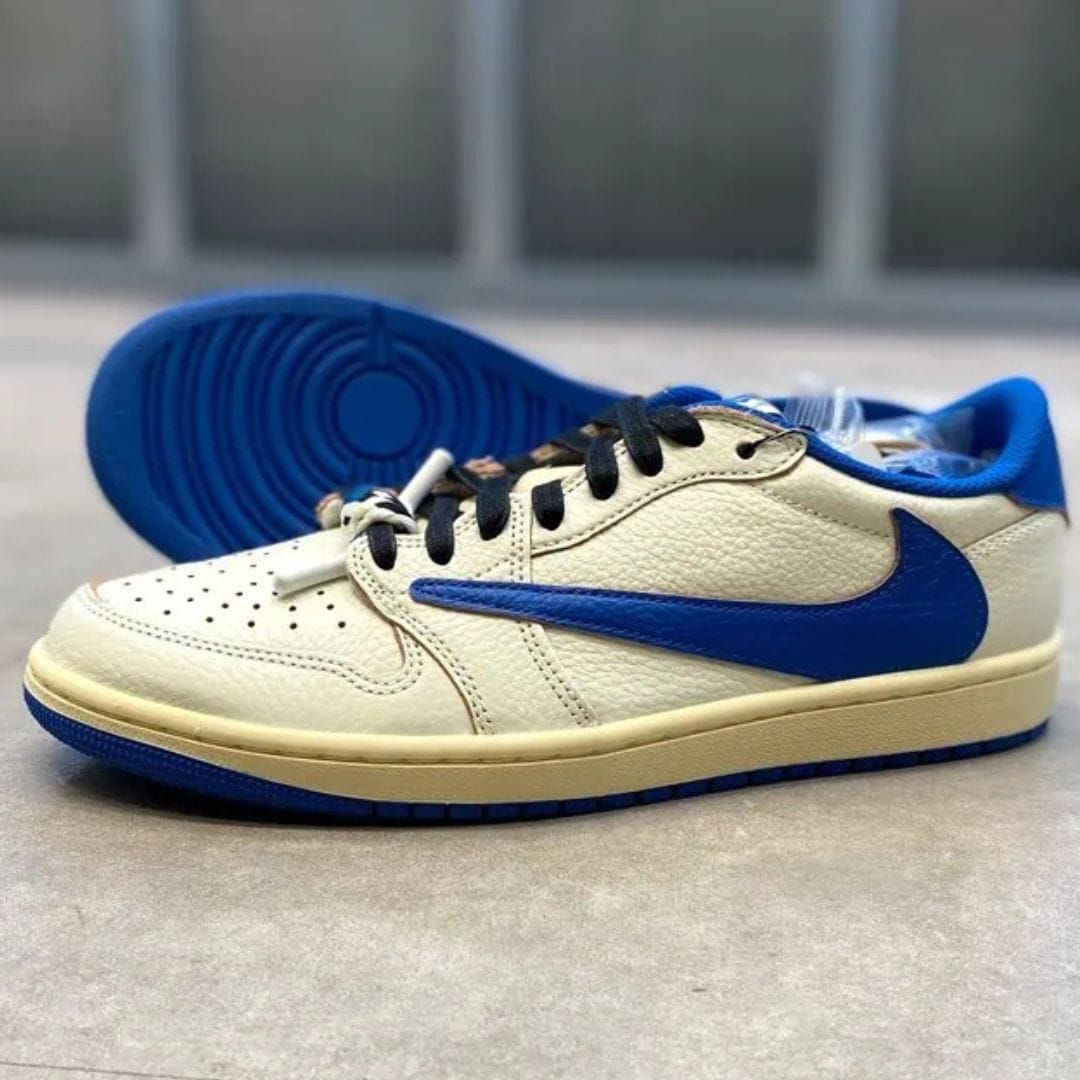 Travis Scott × fragment design × Nike(トラヴィス・スコット × フラグメントデザイン × ナイキ)の「エアジョーダン1 ロー OG “セイル/ミリタリーブルー”」