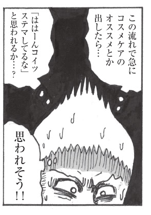 K:でも、若い女性でそれをネガティブに捉える人ってほぼいないと思うんですよ。大多数が歓迎するだろうなと思うし、抗うほうがポジティブに捉えられることのほうが多いのに、おじさんだけがそこを気にしてるというか。肌が綺麗になったほうがいいというシンプルな価値観がなぜ受け入れられないんだろう。