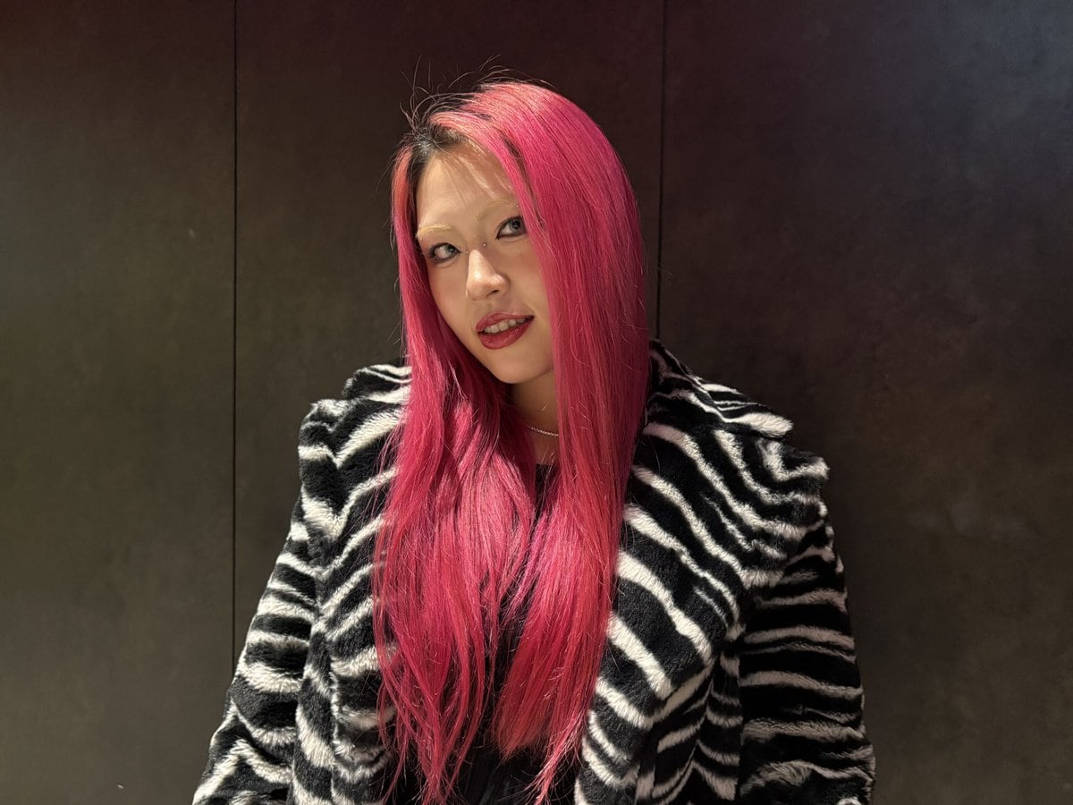 ちゃんまみさんのお気に入りポイントは、ピンク髪&ピアス。アクセサリー使いが、ちゃんみなさんらしい雰囲気を加速させている。ゼブラ柄のアウターや、スパンコールをあしらったパンツなど1点1点派手さが際立っていますが、カラー自体はモノクロが基調。だからこそ、髪色の華やかさがしっかりと存在感を放っています!