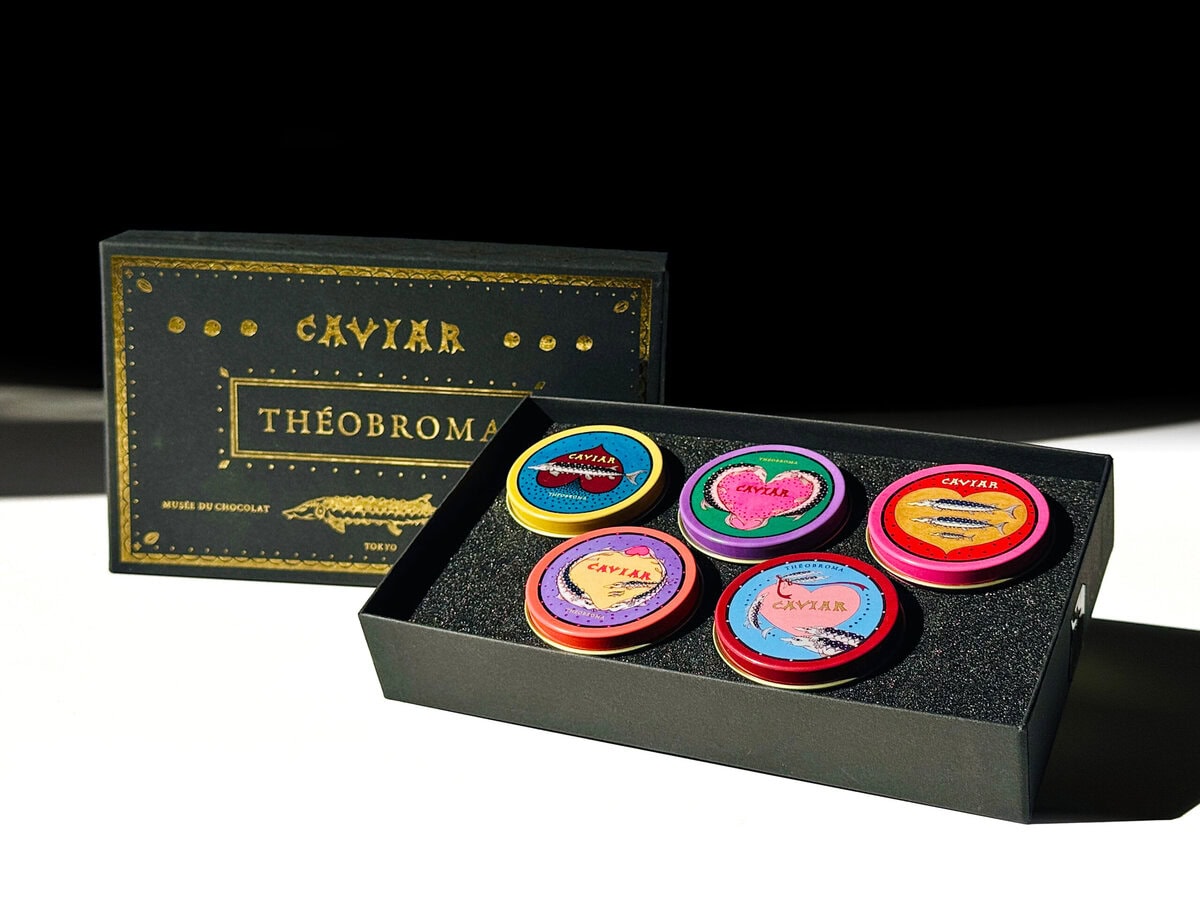 日本のチョコレート専門店といえば1999年創業のテオブロマですが、とくにカカオの個性と奥行きを感じられる商品が特徴です。今回セレクトしたのは、チョコレートをキャビアに見立てた定番人気の「ミニキャビア5缶セット」。カカオの香りがしっかり立つビターチョコレートのほかに、サクッと軽い食感が楽しいシリアルが融合した4種のフレーバーが入っています。ひと粒ひと粒が小さく、口の中でほどけるように広がる一品です。