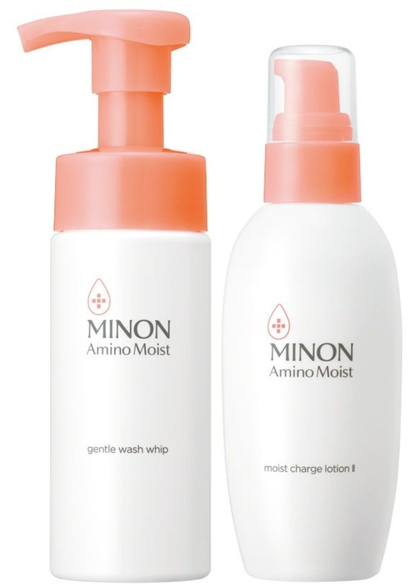 右から:ミノン アミノモイスト モイストチャージ ローション Ⅱ もっとしっとりタイプ 150mL ¥2,200(編集部調べ)、ミノン アミノモイスト ジェントルウォッシュ ホイップ 150mL¥1,650(編集部調べ)(ともに第一三共ヘルスケア お客様相談室☎︎0120-337-336)