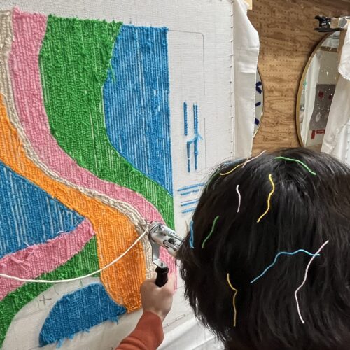 ここのスタジオは仕上げをやってくれるのでタフティングが完了したら作業終了!2週間ほどで郵送してくれるそうです。サイズを玄関に置くラグで40×60にしたので4時間くらいかかったのですが、集中していたからかあっという間!