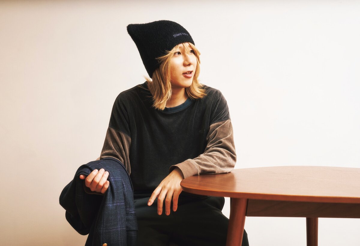 「ハイブランドとファストファッションのコラボは常にチェックしているんですが、その中でもお気に入りなのがこのビーニーです」。身バレ防止に活躍し、猫耳ライクなデザインもポイント。
