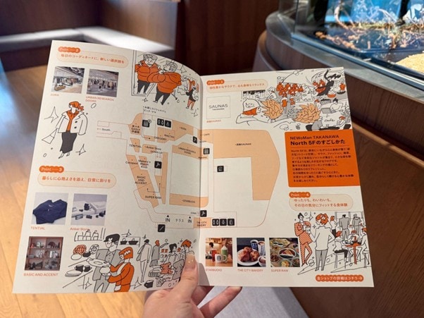 高輪SAUNASの場所はNEWoMan高輪North5階にあり、BUNKITSUやレストランフロアへのアクセスも良好。サウナだけでなく、その前後にショッピングや食事に立ち寄りやすいのが◎です。