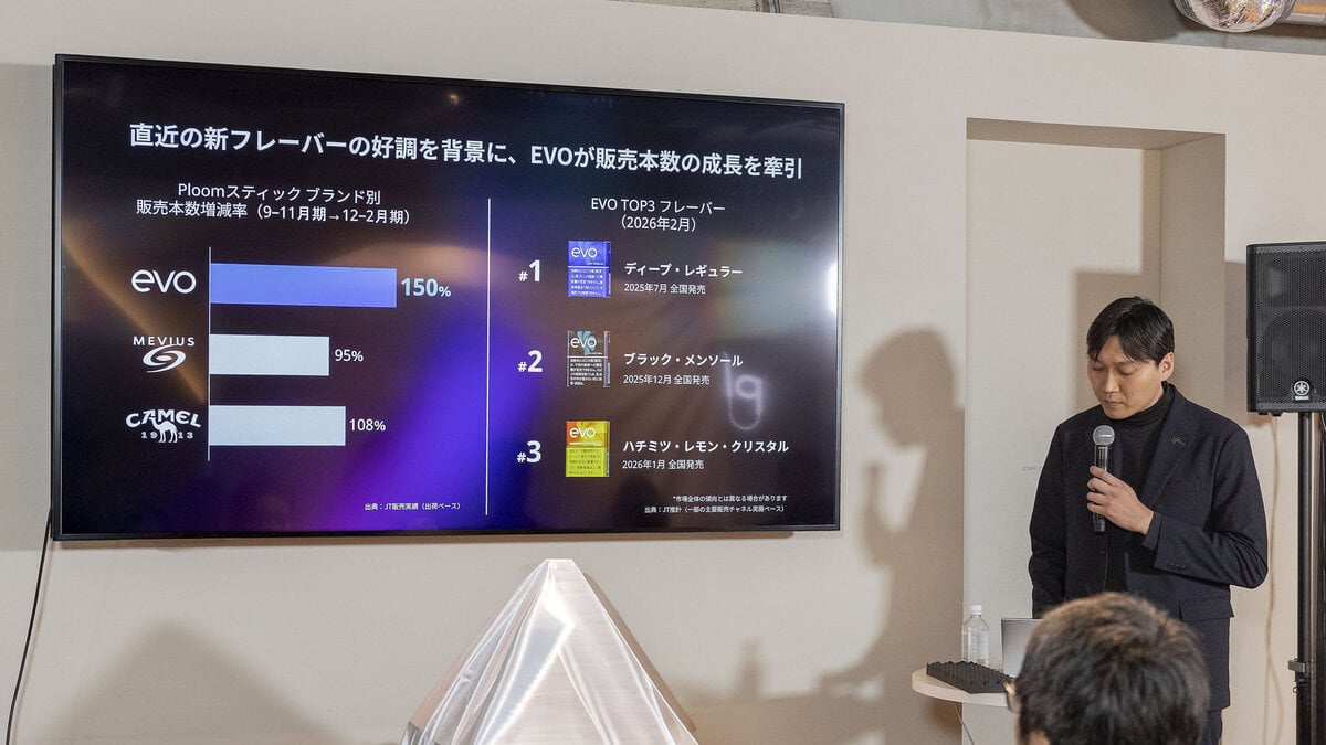 同時に発売された加熱式たばこ専用プレミアムブランド「エボ」の人気との相乗効果により、プルーム・オーラはJT史上最速で累計販売台数400万台を突破し、エボは直近の販売本数で150%増の成長率を記録するなど、どちらも絶好調となっています。プルーム・オーラとエボの組み合わせは、愛煙家にとって最高の選択となっているようです。