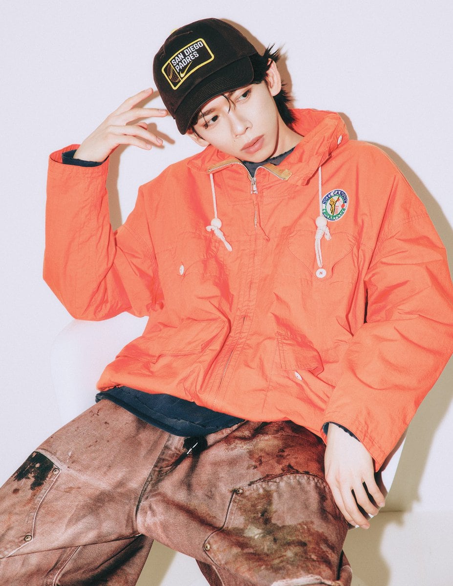 ブルゾン¥83,600/ナイジェル・ケーボン(アウターリミッツ info@outerlimits.co.jp)、転写パンツ¥38,500/トーキング アバウト ジ アブストラクション(ブリゲイトデザイン☎︎0727-34-8284)、その他スタイリスト私物