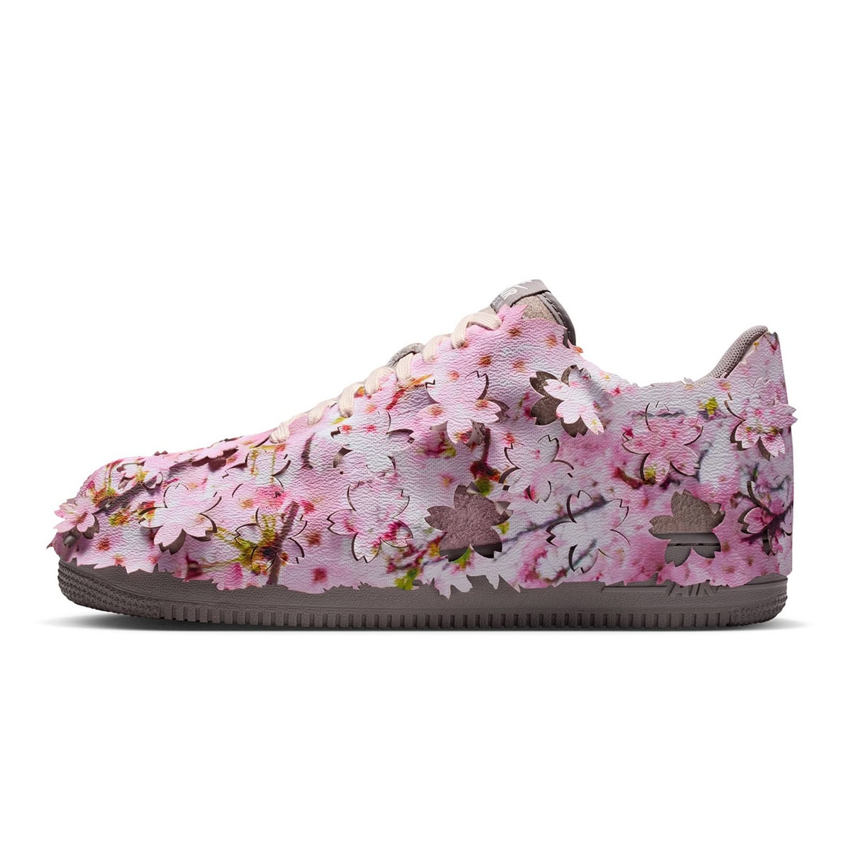 昨年秋の紅葉シーズンにも同ギミックを搭載した「エア フォース1」が登場したが、その春バージョン。アッパーを覆うシュラウドは取り外し可能で、桜の美しい色彩とフォルムを再現し、誰もが知る王道バッシュを華やかに、かつフレッシュに仕上げている。