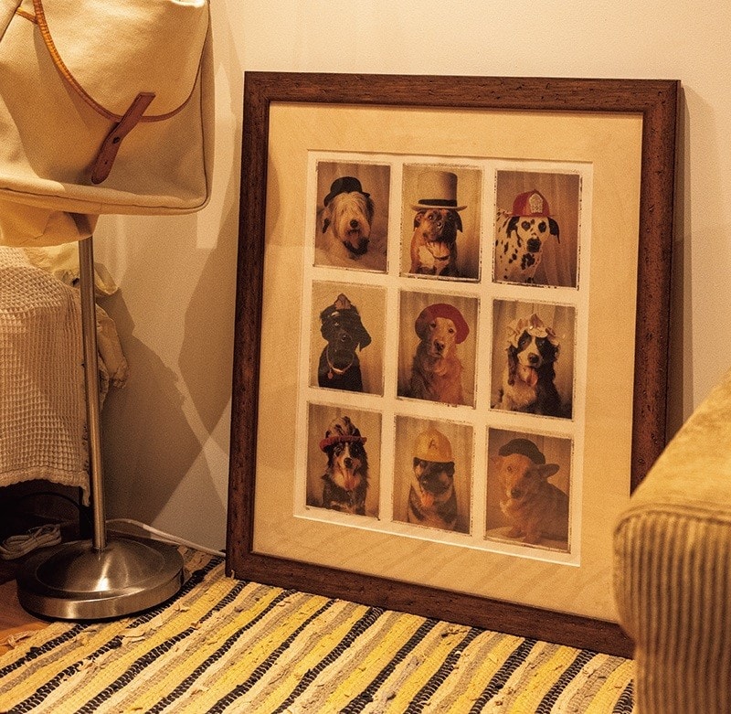 1_子どもの頃に実家で飾られていた犬のアートは、自宅の倉庫で発見して持ってきたもの。フロアライトとともにディスプレイした。