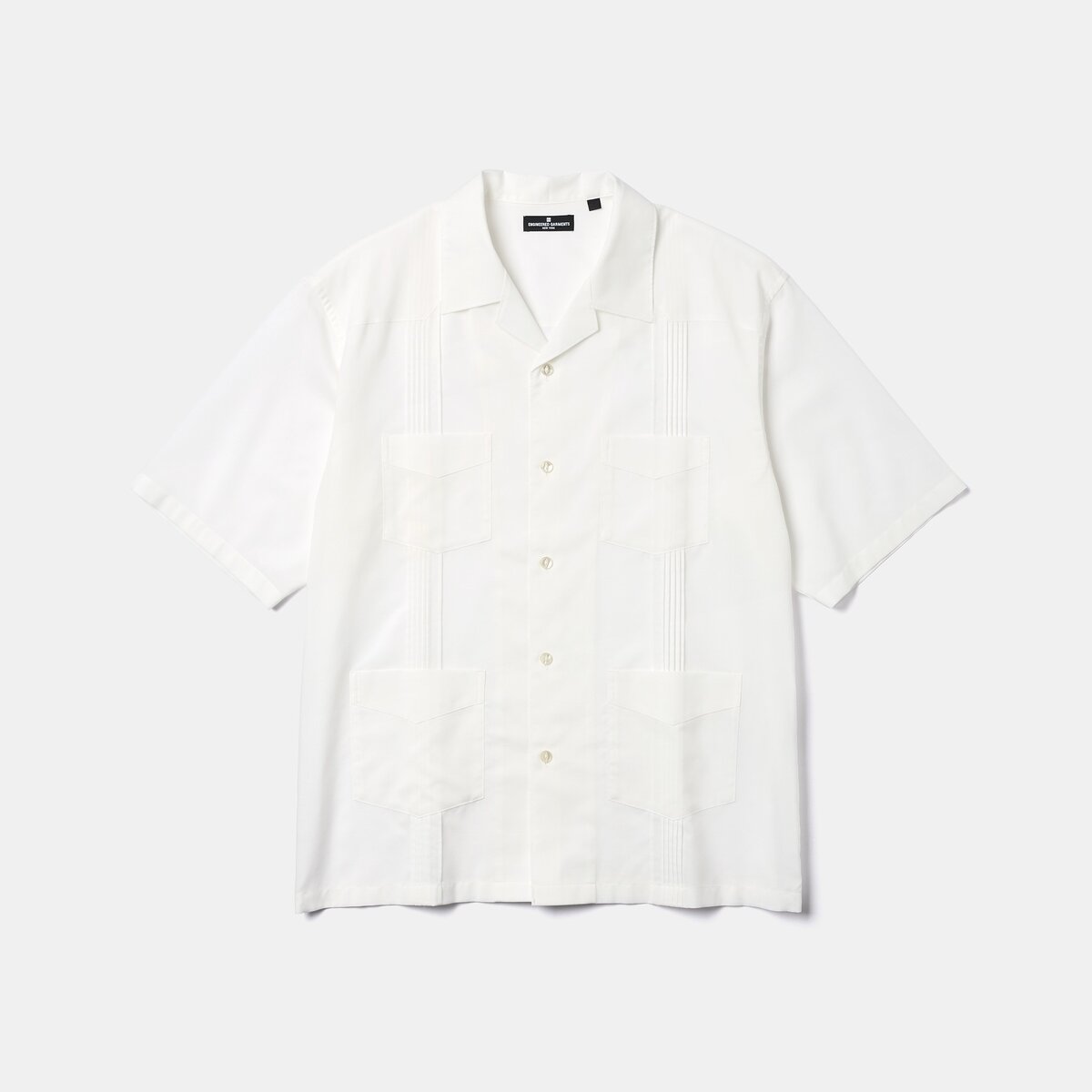 キューバシャツはその名の通り、キューバが発祥とされる開襟とフロントの刺繍とプリーツが特徴のシャツ。