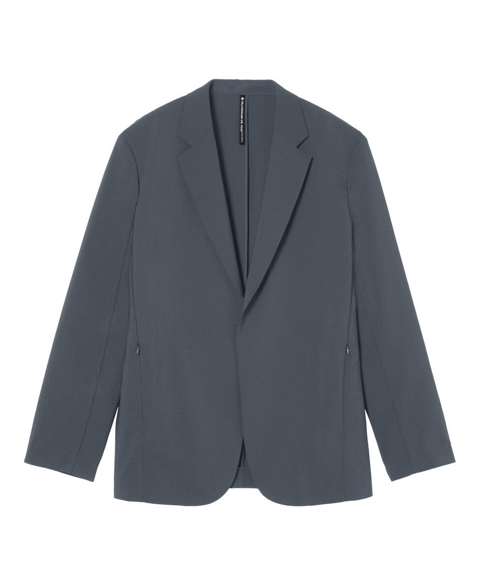 強撚糸を使用したドライタッチな清涼素材のテーラードジャケット。接触冷感と吸汗速乾機能を備え、動作を妨げにくいパターンメイキングと優れたストレッチ性によって快適な着心地に。