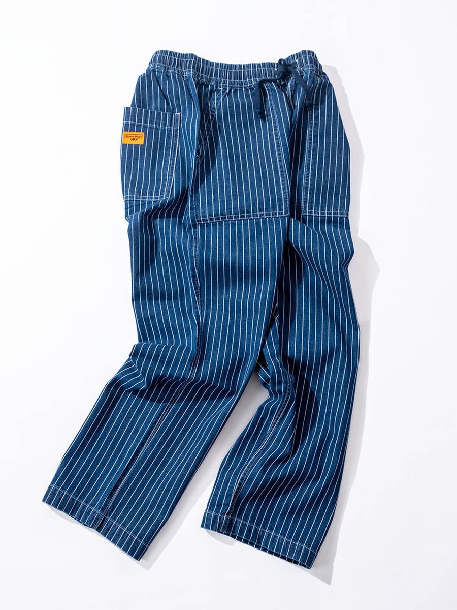 今シーズンの新作モデル。デニム素材にピンストライプを組み合わせた一本で、ライトオンスの生地による軽やかな穿き心地も魅力。ジャストからルーズまで幅広いスタイリングに対応し、春夏の着こなしにさりげなく変化をつけてくれる。