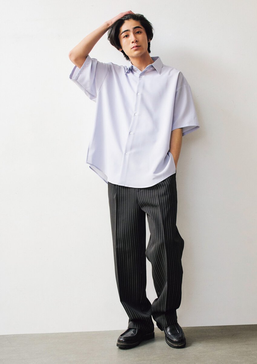 タックワイドイージースラックス¥8,030、半袖シャツ¥6,490(※5月発売予定)/ともにDAWNCE、その他スタイリスト私物