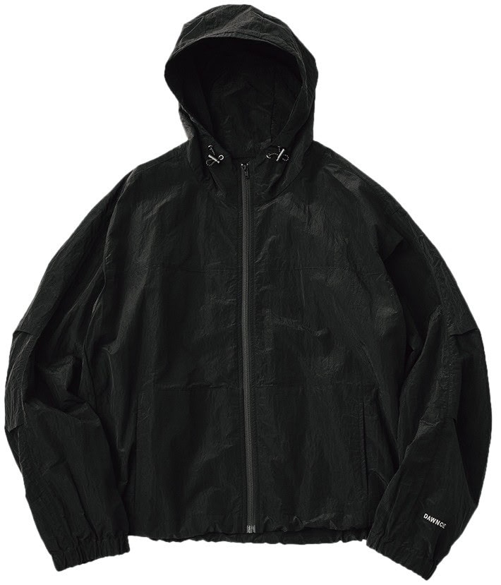 シャカシャカとした手触りで、シワ・ツヤ感がある独特な生地のフルジップアップタイプのブルゾン。フードと裾部分はドローコードで調整が可能で、絞ることで着こなしの印象に変化をつけられる。身幅はややゆったりとしたリラックスフィットで、フードや袖のラインに立体感を持たせたデザインが特徴。背部はメッシュのベンチレーション仕様にして通気性を持たせ、着用時のムレを防止。様々なシーンで快適に着用できる。