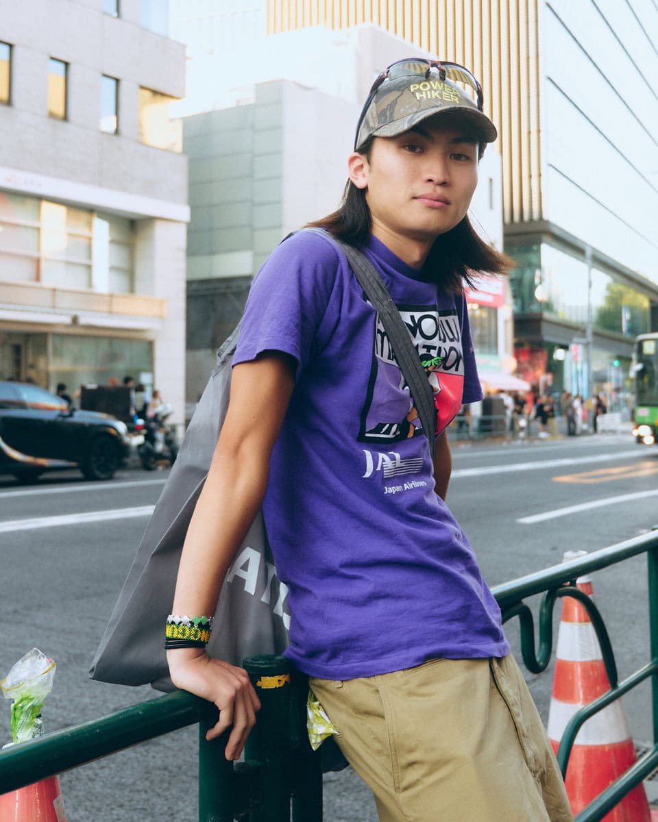【スナップ】テキストデザインを集めたキャッチーな上半身と、シンプルにまとめた下半身の対比に注目