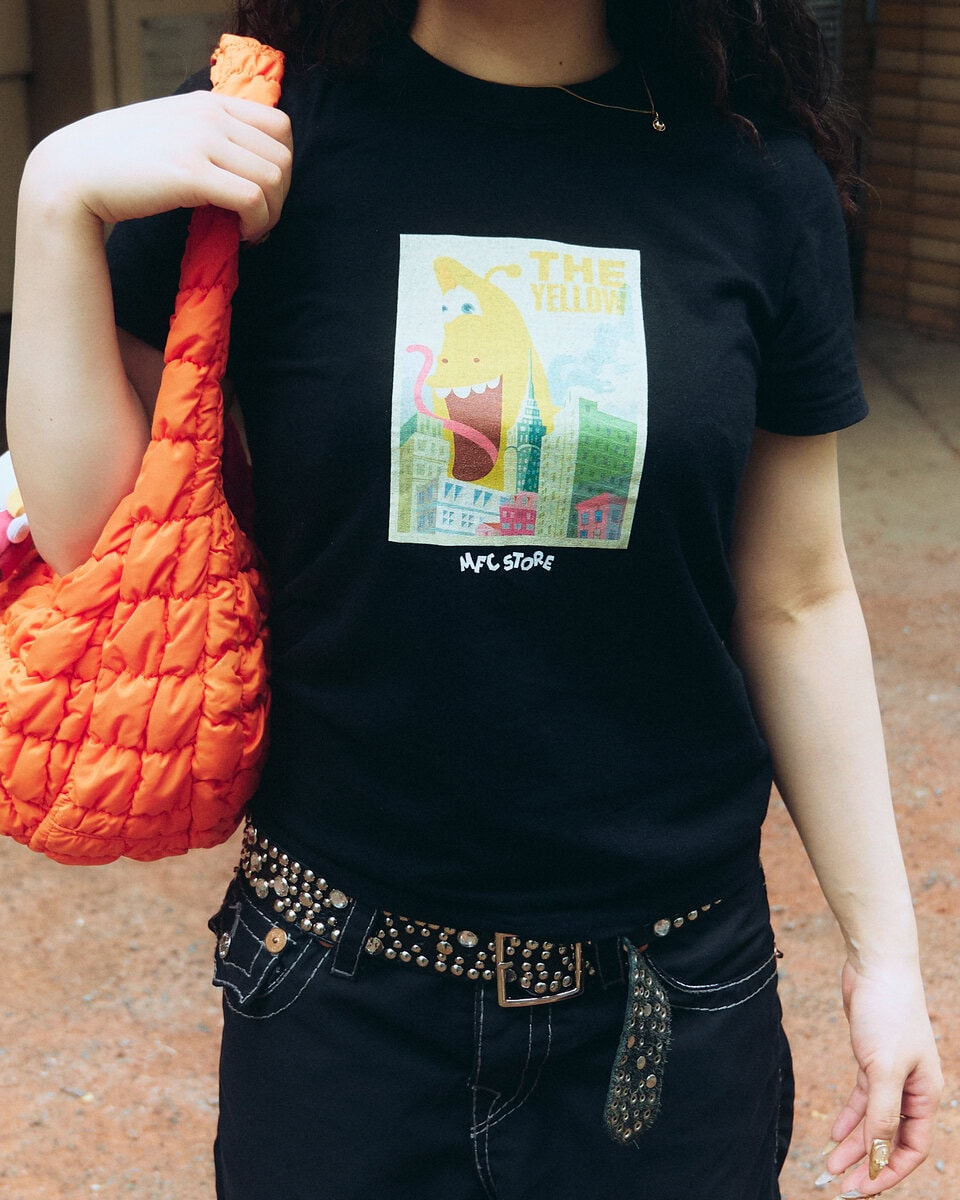 【スナップ】テキストデザインを集めたキャッチーな上半身と、シンプルにまとめた下半身の対比に注目