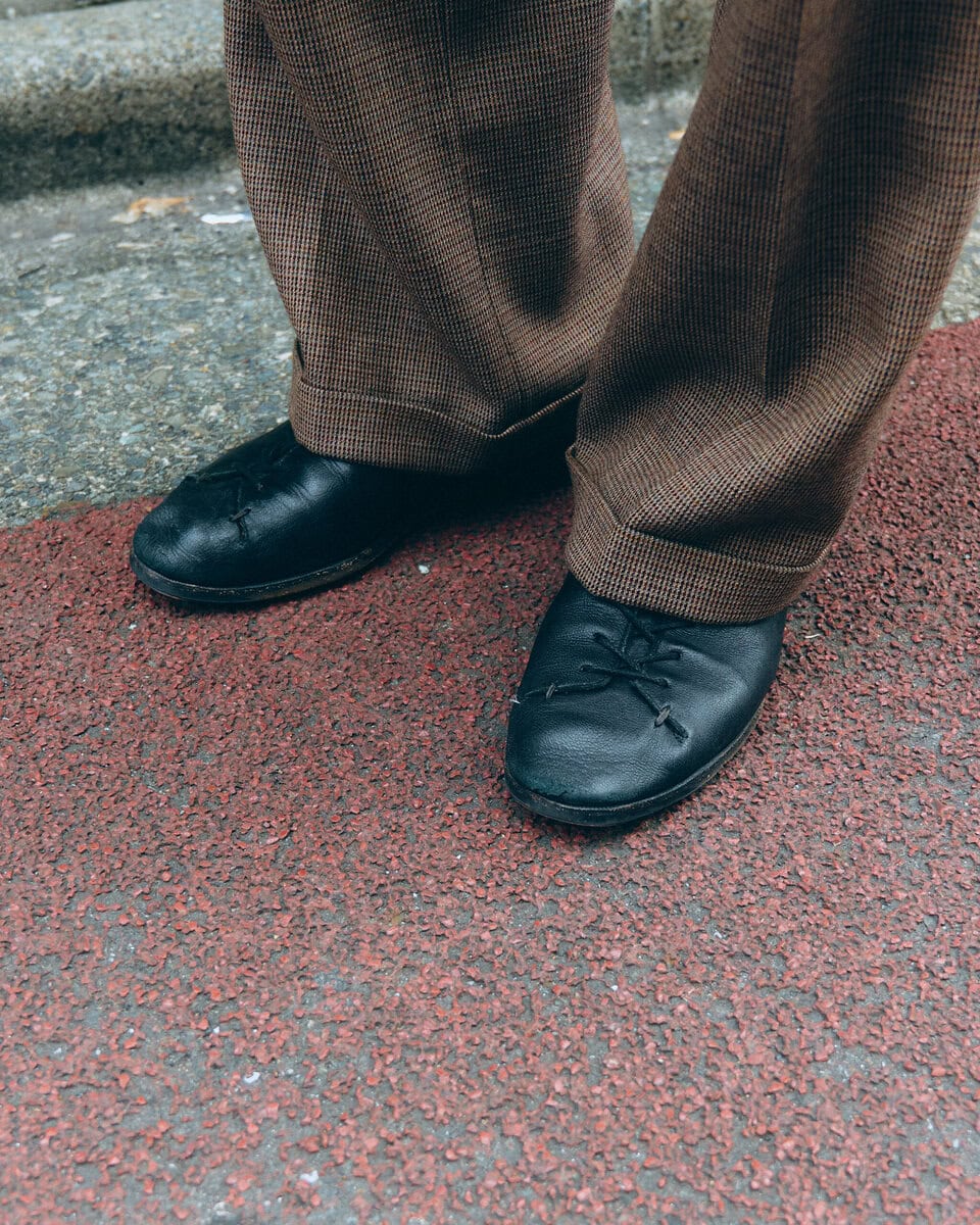 今日の着こなしポイント:USA製のスラックスに日本製のブーツを合わせています。