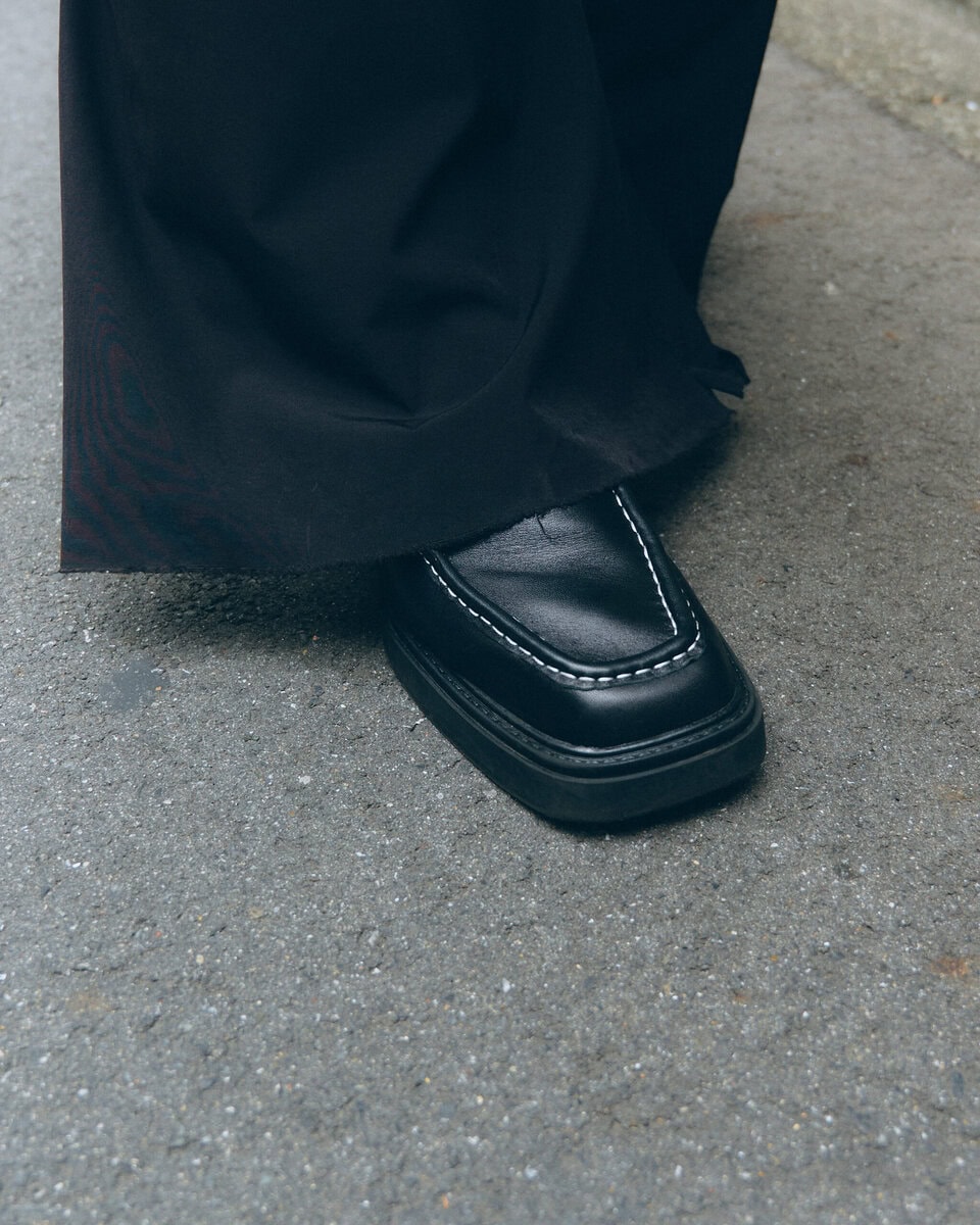 【スナップ】トーンと質感の異なるブラックでまとめて。どこか近未来感さえ漂わせるモードなスタイリング