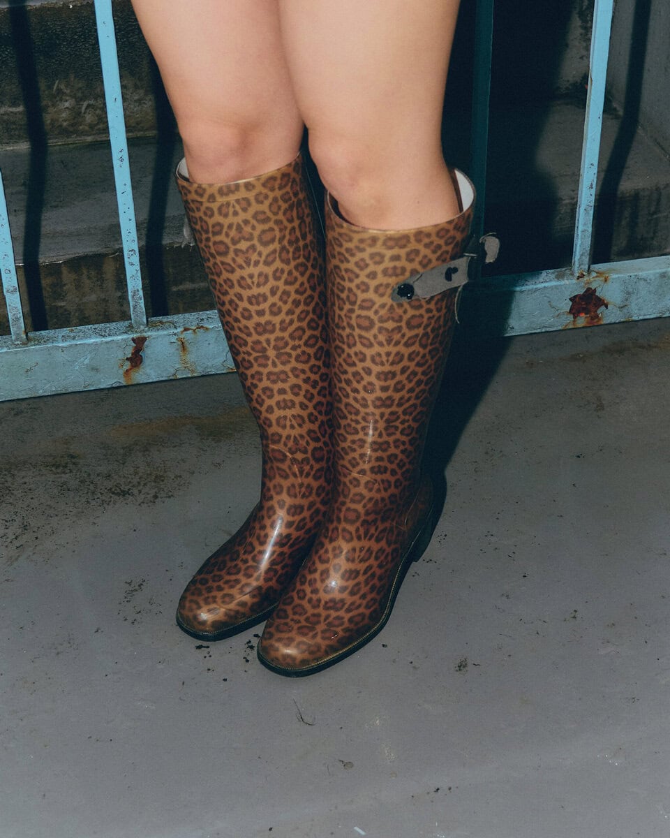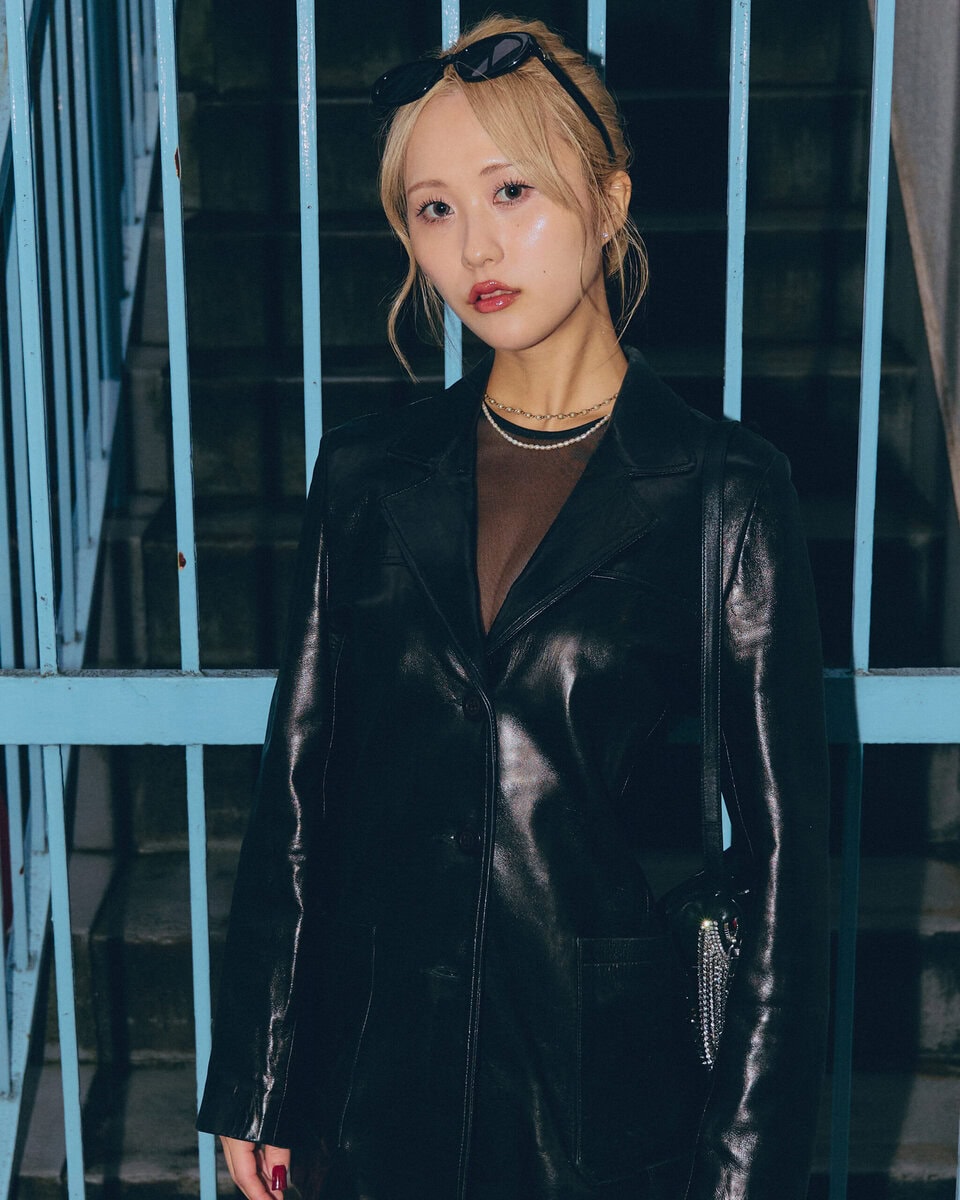 【スナップ】レザーハーフコートの“強さ”にも負けない、アニマル柄&ラインストーンのアクセント