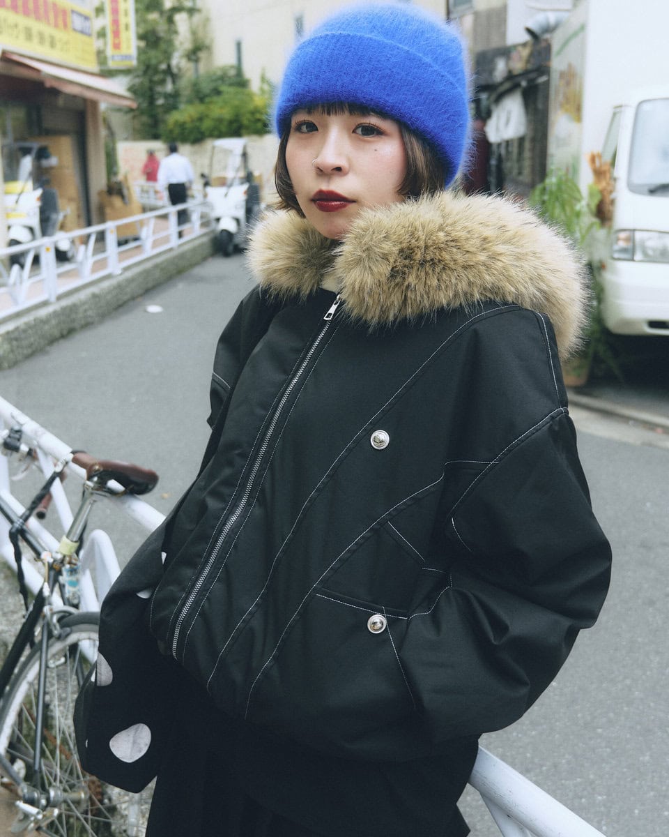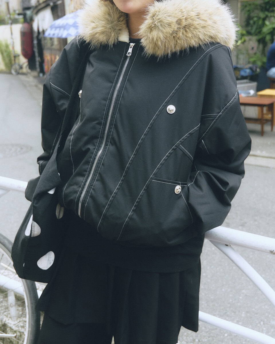 アウター:ファー付きブルゾン/レイン