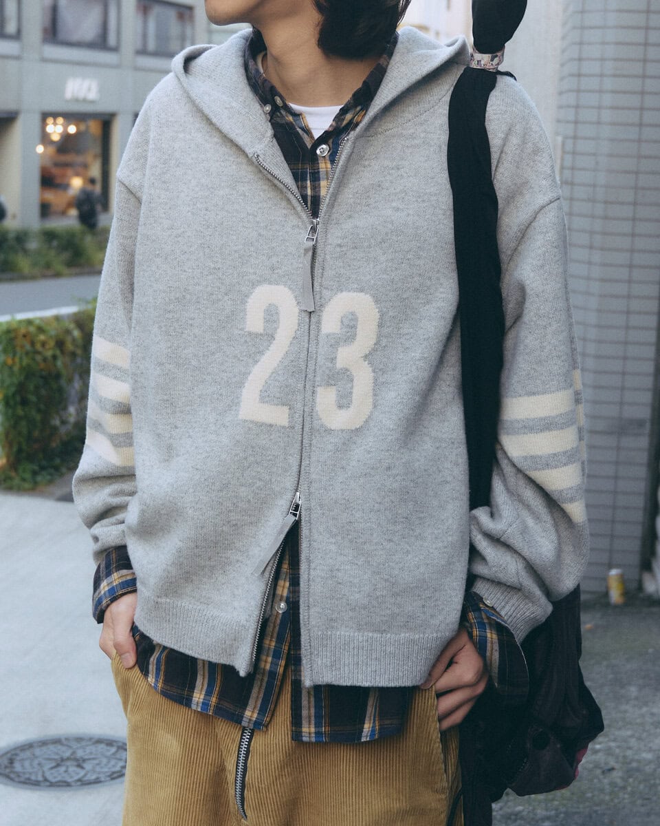 今日の着こなしポイント:最近買ったニットパーカを主役にできるようなスタイリングにしました。