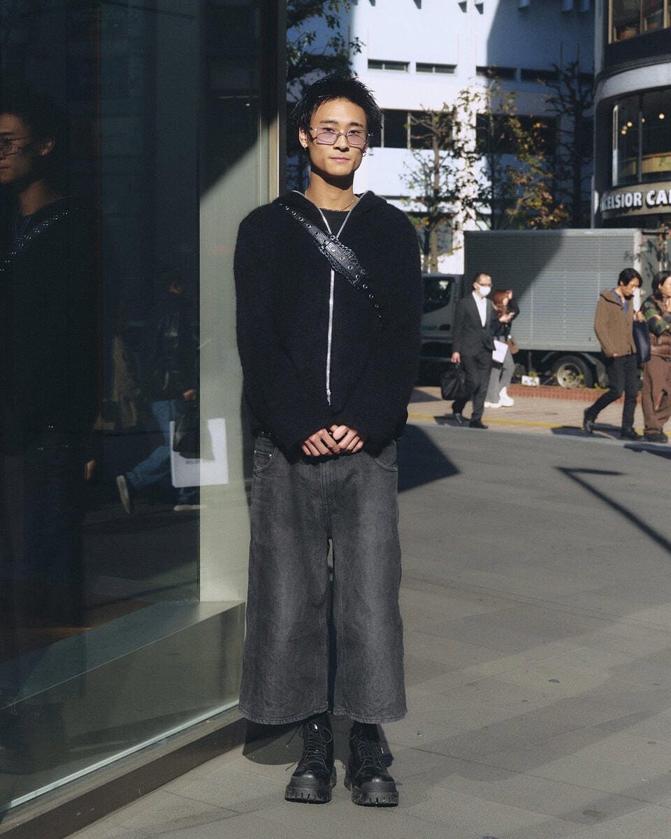 今日の着こなしポイント:サイズ感をAラインにして、かつオールブラックで。