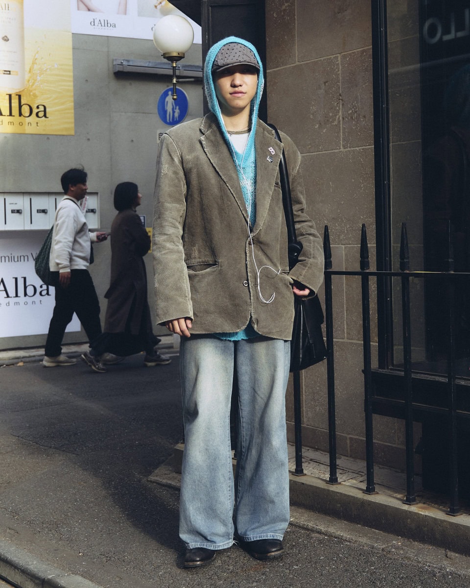 【スナップ】冬らしいカラーパレットにひと際映える「水色」パーカ