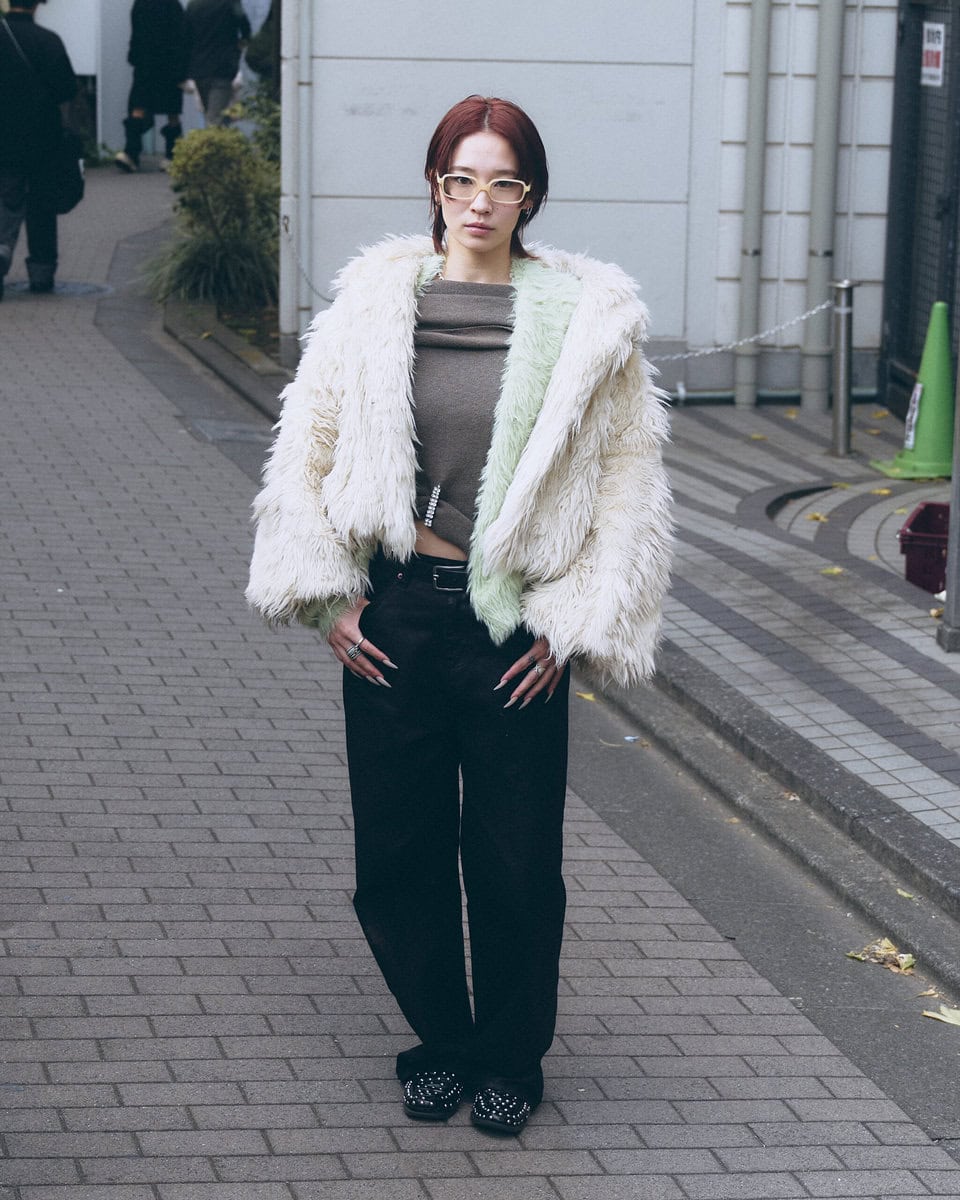 【スナップ】ファー×フェイクレザーの質感の掛け算が見どころ
