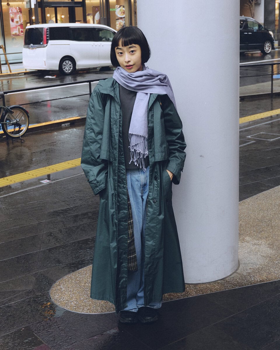 【スナップ】暗い印象にならないよう明るいグレーのストールを採用した色選びの妙